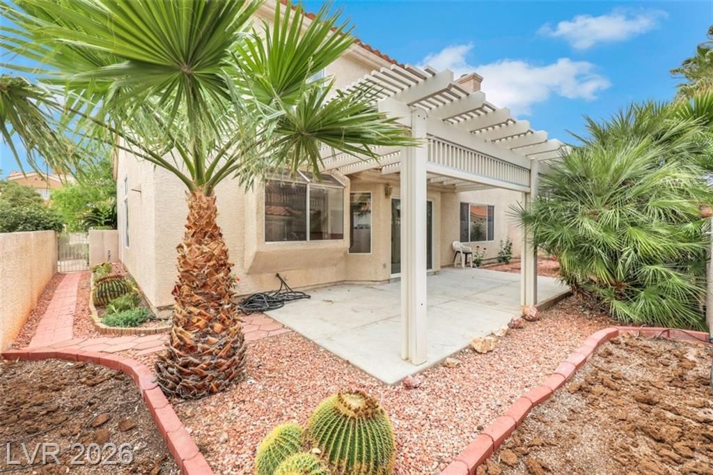 WELCOME HOME TO TWO STORY STUNNER LOCATED IN SUMMERLIN! EXTERIOR FEATURES WELCOMING CURB APPEAL UPON ENTRY WITH MATURE LANDSCAPING IN FRONT AND BACK OF HOME! GARAGE FEATURES BRAND NEW (APRIL 2026) EPOXY FLOOR!!!! UPON ENTERING, A FORMAL FRONT LIVING SPACE WELCOMES YOU HOME. 1/2 BATH IS CONVENIENTLY TUCKED AWAY ON THE FIRST STORY FEATURING A STORAGE SPACE UNDER THE STAIRS. WELCOMING KITCHEN FEATURES CORIAN COUNTERTOPS AND LOOKS OUT TO BACKYARD. KITCHEN HAS GARDEN WINDOW GREAT FOR PLANTS, GAS STOVE, AND PLENTY OF CABINET SPACE! KITCHEN FEATURES SEATING + BREAKFAST NOOK/ DINING TABLE SPACE IN FRONT OF SLIDING GLASS DOOR TO BACKYARD. KITCHEN AND DINING/ BREAKFAST NOOK LOOK TO LIVING ROOM WITH GAS FIREPLACE! ALL BEDROOMS ARE UPSTAIRS! OVERSIZED PRIMARY SUITE FEATURES TWO WALK IN CLOSETS!! SECOND AND THIRD BEDROOM SHARE FULL BATH UPSTAIRS. ENJOY MATURE FRUIT TREES, PLANTED VEGETABLES, AND MATURE LANDSCAPING IN BACKYARD WITH COVERED PATIO-- PERFECT SPOT TO UNWIND! WELCOME HOME!!